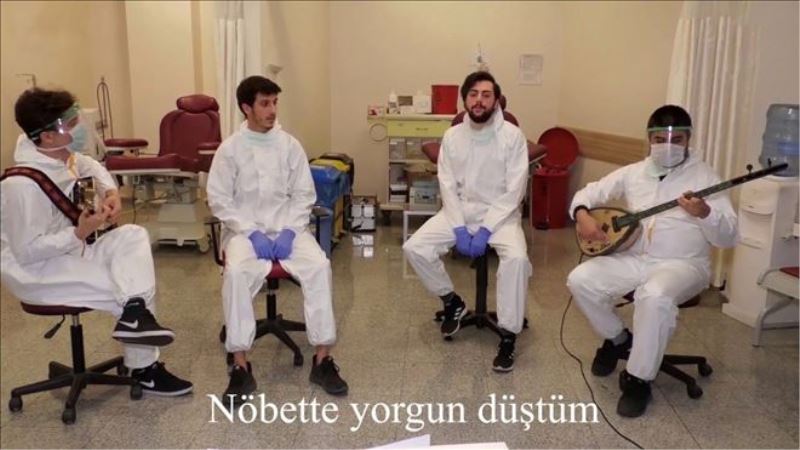 Karabük Eğitim ve Araştırma Hastanesi´nde korona virüs nedeniyle gece gündüz fedakarca ve özverili bir şekilde çalışan sağlık çalışanları, vatandaşlarına ve meslektaşlarına moral vermek amacıyla besteledikleri şarkı için video çekti. Yaren Esendemir´in ünlü şarkıcı Yusuf Aktaş´ın (Reynmen) ‘Radyoda Neşet´ şarkısının sözlerini değiştirerek yazdığı Covid-19 bestesini, Gitarist Hasan Tunç ve Bağlamacı Fevzi Yıldırım´ın desteği ile Hidayet Güler ve Semih Cırık seslendirdi.