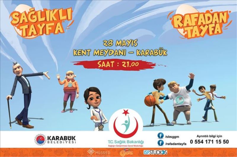 Obezite ile mücadele kapsamında Sağlık Bakanlığı tarafından çocuk ve gençlere yönelik sağlıklı yaşamın teşvik edilmesi amacıyla düzenlediği 'Sağlıklı Tayfa Rafadan Tayfa' müzikali Karabüklü çocuklarla buluşuyor. 28 Mayıs 2018 Pazartesi günü, saat 21.00´da Karabük Kent Meydanında gerçekleşecek olan etkinlikte çocuklar hem bilgilenecek hem de sağlıklı yaşamın sırlarını öğrenecek.