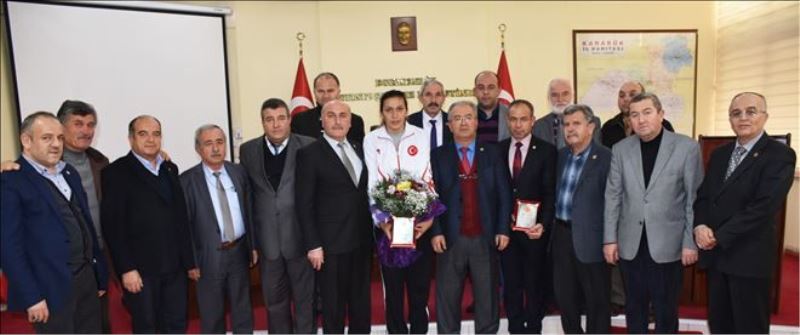 14-25 Kasım tarihleri arasında Bulgaristan´ın Başkenti Sofya´da düzenlenen Avrupa Büyük Bayanlar Boks Şampiyonası´nda 81 kiloda ringe çıkarak şampiyon olan milli sporcu Elif Güneri´ye ve antrenörü Baykan Arslan´a Karabük İl Genel Meclisi Başkanlığı tarafından altın ve plaket takdim edildi.