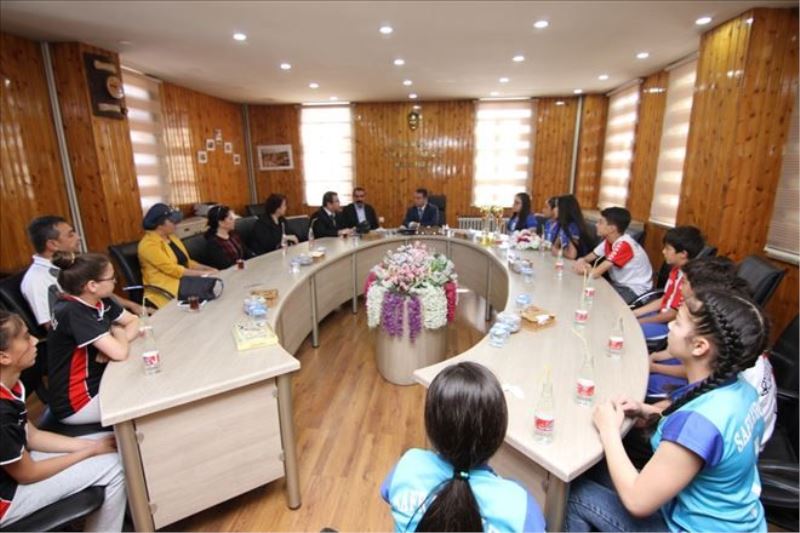 Okul Müdürü Yıldız beraberinde gelen öğrencileri de tanıtırken, Futbol, Jimnastik, Masa Tenisi ve Yüzme dallarında şampiyon öğrenciler ile uzun süre sohbet eden Safranbolu Belediye Başkanı Dr. Necdet Aksoy, “ Nazik ziyaretlerinden ve iyi dileklerinden dolayı teşekkür eden çocuklarımızı tebrik ediyorum. Onlarla gurur duyuyorum” dedi.