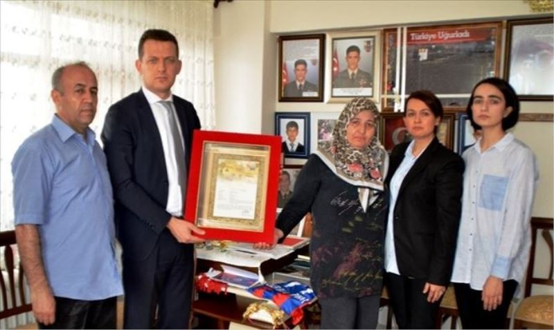 Şehidin babası İsmail Akpınar, annesi Ülker Akpınar ve eşi Hafize Nur Akpınar şehadet belgelerini Ürkmezer´den teslim aldı.