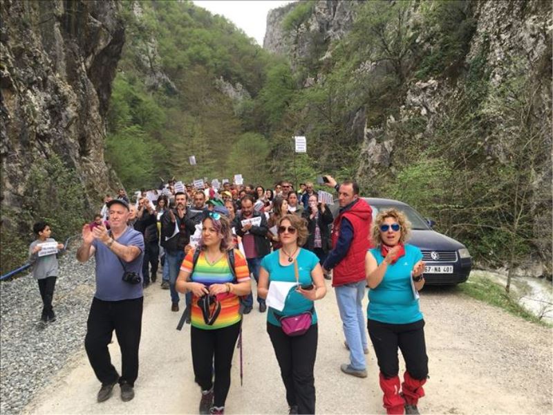 Pikniğin ardından kanyon üzerinde insan zinciri oluşturan onlarca kişi ellerindeki 'HES´e hayır' dövizleriyle yürüyüş gerçekleştirdi.