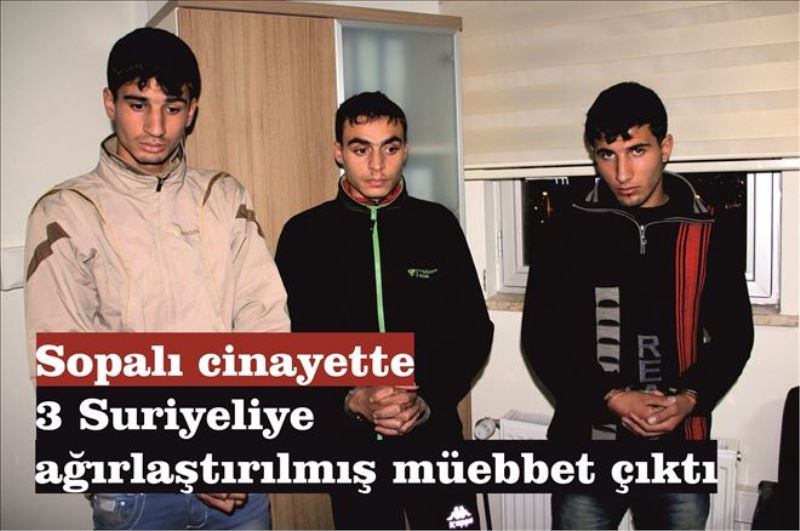 Yaşlı adamı öldürerek üzerindeki para ve cep telefonunu aldıktan sonra kaçan ve Gaziantep´te yakalanan Suriyeli Abdulcebbar Abbud, Derwiş Dakka ve Muhammad Sahra Karabük 1. Ağır Ceza mahkemesinde devam eden yargılamaları tamamlandı. Mahkeme heyeti tarafından 3 Suriyeli gence Rahmi Kayacuk´u ‘Nitelikli Kasten Adam Öldürme´ suçundan ağırlaştırılmış müebbet hapis cezasına çaptırdı. Heyet ayrıca her 3 Suriyeli´ye yağman suçundan 12´şer yıl, Halime Kayacuk´u da ‘Öldürmeye teşebbüs´ tende 18´er yıl hapse mahkum etti.