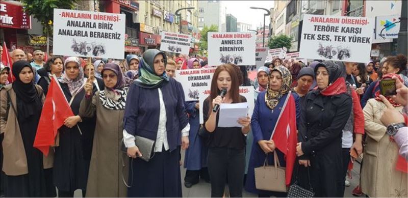 Toplanan grup adına konuşan Aysun Eroğlu, bugün sivil toplum kuruluşlarının kadın temsilcileri olarak, annelerin Diyarbakır´da başlattığı onurlu direnişlerine destek olmak üzere 81 ilde eşzamanlı olarak toplandıklarını belirterek, “Bu direnişin teröre en büyük darbeyi vuracak iradeyi ortaya koyduğuna yürekten inanıyoruz.Tarih, Diyarbakır´daki anneleri ve teröre meydan okuyan direnişlerini saygı ile yazacaktır. Bulundukları şehirlerde, siyasi ve toplumsal yalnızlaştırılma dahil, her şeyi göze alıp evlatlarının dönmesini isteyen anneler, başka canlar yanmasın diye çıktıkları yolda inşallah zafere ulaşacaklardır.” dedi.