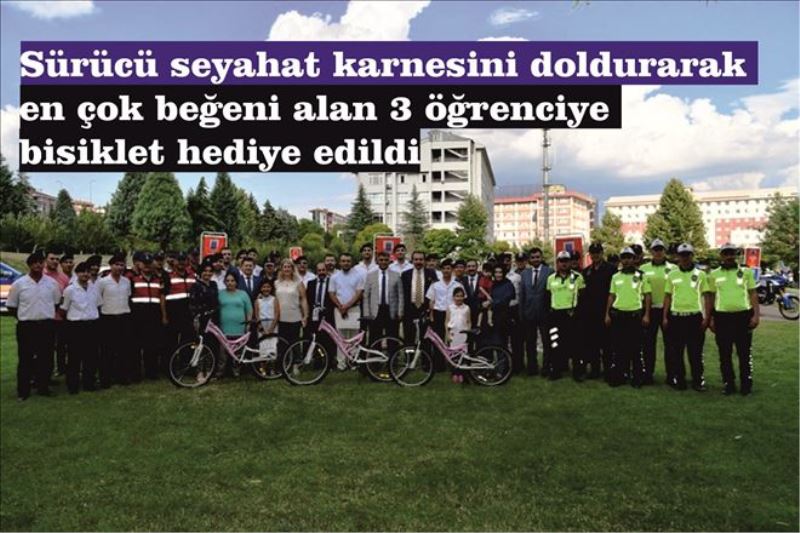 İl Jandarma Komutanlığı´nda düzenlenen törende trafikte seyir halinde bulunan sürücülerin trafik kurallarına uymaları, trafik işareti ve işaretçilerine riayet etmeleri konusunda farkındalık oluşturması ve çocuklarda ise trafik bilinci ve kültürünün yerleştirilmesi amacıyla İçişleri Bakanlığınca hayata geçirilen 'Dikkat Sizden, Notlar Bizden' projesi kapsamında “Sürücü Seyahat Karnesini' doldurarak sosyal medya üzerinden katılan ve en çok beğeni alarak ilk 100 kişi arasına giren Azra Nur Türten, Nehir Nergis Kanat ve Berrak Özüm Oktar isimli öğrencilere bisikletleri teslim edildi.
