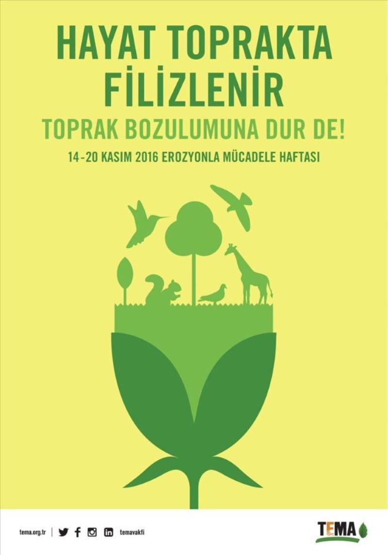 TEMA Vakfı, bu yıl Erozyonla Mücadele Haftası´nda toprağın verimliliğindeki azalmayı ifade eden 'toprak bozulumu'nu gündeme getiriyor. TEMA Vakfı Yönetim Kurulu Başkanı Deniz Ataç 'Toprak bozulumu, toprağın sağlığında meydana gelen bozulmalar ve sonrasında toprağın sunduğu hizmetlerin azalması olarak nitelendiriliyor. Dünyada kullanılabilir arazilerin %33´ü toprak bozulumuna uğramış durumda. Türkiye´de ise toprak bozulum tiplerinden sadece erozyon dikkate alındığında bile topraklarımızın %86´sında erozyon meydana geldiği görülüyor. Toprak bozulumu su kıtlığı, gıda güvensizliği, iklim değişikliğinde hızlanma, yoksulluk, göç, toprak ve toprağa bağlı diğer ekosistem hizmetlerinde azalma gibi sonuçlara yol açıyor' dedi.