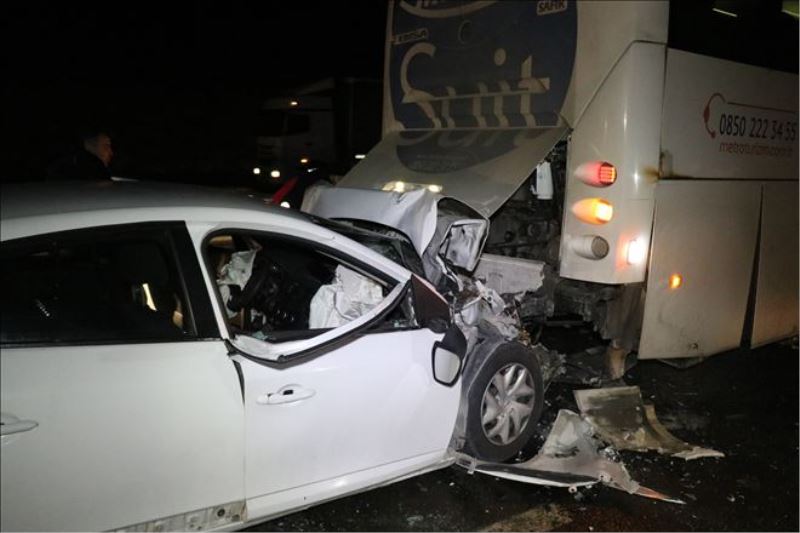 Aynı istikamette ilerleyen ve hafif ticari aracın kaza yaptığını gören 34 BK 6816 plakalı yolcu otobüsünün şoförü Hasan Çalışkan, devrilen araca çarpmamak için yavaşlayarak şerit değiştirdiği sırada, arkasından gelen Eren Sayan´ın kullandığı 34 KE 0482 otomobil otobüse çarptı.