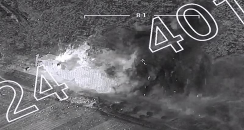 Türk Hava Kurumuna bağlı savaş uçaklarının Afrin´deki PKK/KCK/PYD-YPG terör örgütlerine ait silah ve mühimmat deposunu vurma anının görüntüleri ortaya çıktı.