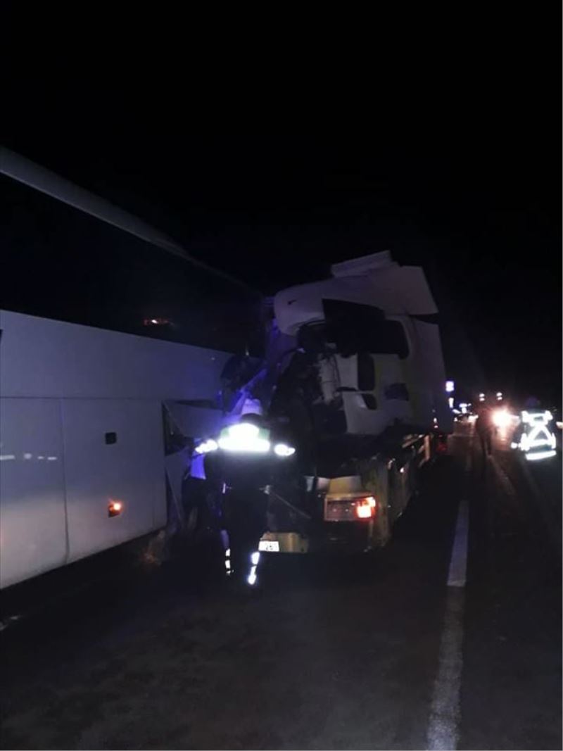 Kaza, dün gece saatlerinde D-100 Karayolu Gerede ilçesine bağlı Çayören Köyü mevkiinde meydana geldi. Edinilen bilgiye göre, İstanbul´a seyir halinde olan Özgür İmrağ yönetimindeki 34 JM 3989 plakalı yolcu otobüsü, arız yapması nedeniyle yol üzerinde durdu. Otobüsün arızasının giderildiği sırada aynı istikamette seyir halinde olan İlhan Demir yönetimindeki 05 LE 261 plakalı tır, hızla yolcu otobüsüne çarptı.