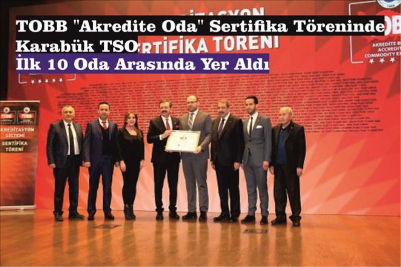Karabük Ticaret ve Sanayi Odası yapılan denetimler sonucunda TOBB Akreditasyon Sisteminde belge yenilenmesine hak kazandı. Akreditasyon Sertifika Töreninde 3.8. ve 11. gruplarda yer alan toplam 115 Oda/Borsa´dan 103 Oda/Borsa´nın belgelerini yenileme hakkını kazandığı açıklandı.