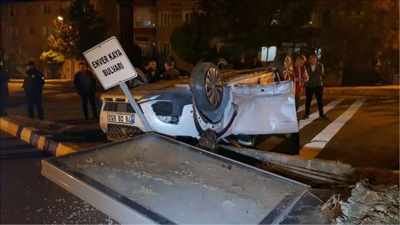 Karabük Eğitim ve Araştırma Hastanesi önünde meydana gelen trafik kazasından hastaneden çıkıp kavşağa girmeye çalışan bir otomobil yukarıdan gelen başka bir otomobile çarpıyor. Çarpmanın etkisiyle savrulan otomobil kaldırıma çarparak yan yatıyor.