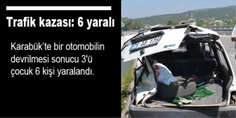 Edinilen bilgiye göre, Eskipazar istikamettin kent merkezi yönüne giden Hasan Çelik yönetimindeki 78 AB 176 otomobil, Hamzalar mevkisinde yoldan çıkarak devrildi. Kazada otomobil içinde bulunan sürücü Hasan Çelik ile eşi Şerife, çocukları Ferhat, Ahmet Furjan ve Esra Gül Çelik ile kayınvalidesi Şerife Aydoğmuş yaralandı. Yaralılar olay yerine gelen 112 Acil Servis ekiplerinin ilk müdahalesinin ardından KBÜ Karabük Eğitim ve Araştırma Hastanesine kaldırıldı.