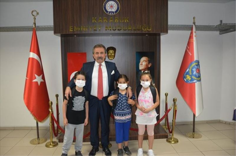 Karabük Şirinevler İlkokulu Müdürü Ramazan Yeniaydın, Öğretmen Erdoğan Çalgeriş ve 3. Sınıf Öğrencileri Zeynep Duru Hekim, Zeynep Köksal ve Ömer Faruk Oral İlköğretim Haftası münasebeti ile Karabük İl Emniyet Müdürü Sırrı Tuğ´u ziyaret ettiler.