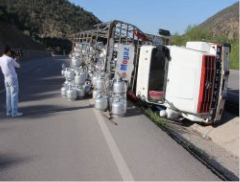 Edinilen bilgiye göre, Durmuş Özdemir'in (54) idaresindeki 67 AY 283 plakalı dolu tüp yüklü kamyon, Kayı köyü çıkışından virajı döndükten sonra kontrolden çıktı. Yoldan çıkan araç, su kanalına devrildi. Kamyon sürücüsü Durmuş Özdemir'in yara almadan kurtulduğu kazada, büyük bir faciadan dönüldü. Tüpler, olay yerine gelen bir başka kamyonete yüklendi.