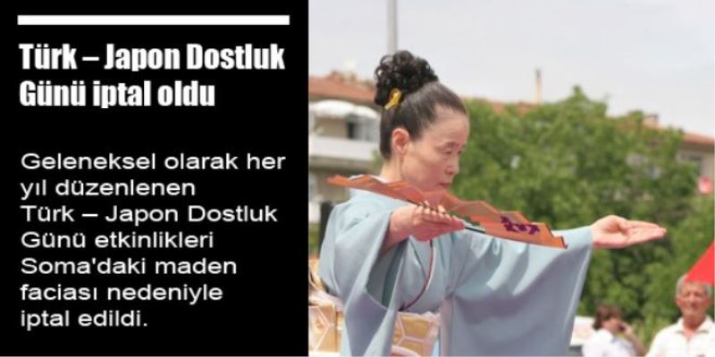 Her yıl mayıs ayı içerisinde çeşitli etkinliklerle kutlanan, bu yıl 26 Mayıs 2014 tarihinde gerçekleştirilmesi planlanan Türk – Japon Dostluk Günü etkinlikleri Manisa’nın Soma ilçesinde meydana gelen maden faciası nedeni ile iptal edildi.
