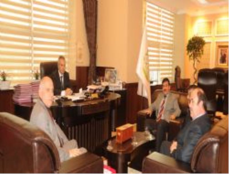 Başkanı Zeki Öz ve Başkan Yardımcılarına teşekkürlerini sunan Rektör