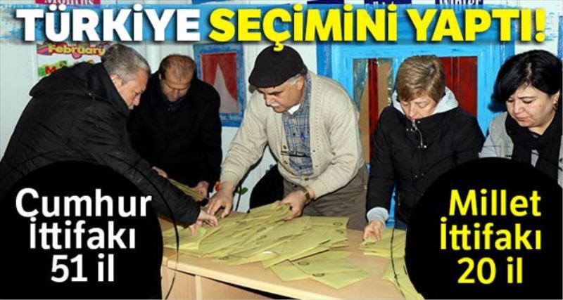 Resmi olmayan sonuçlara göre, oyların yüzde 51.67´sini alan Cumhur İttifakı 51 il ve 682 ilçede kazandı.
