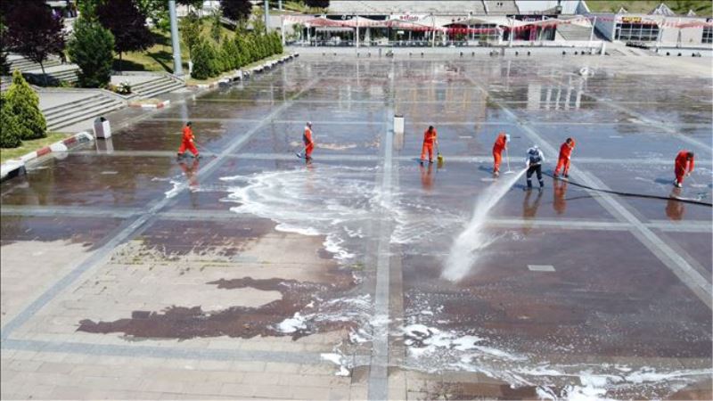 Türkiye´nin en büyük meydanlarından biri, Cuma Namazı için yıkanıp dezenfekte edildi
