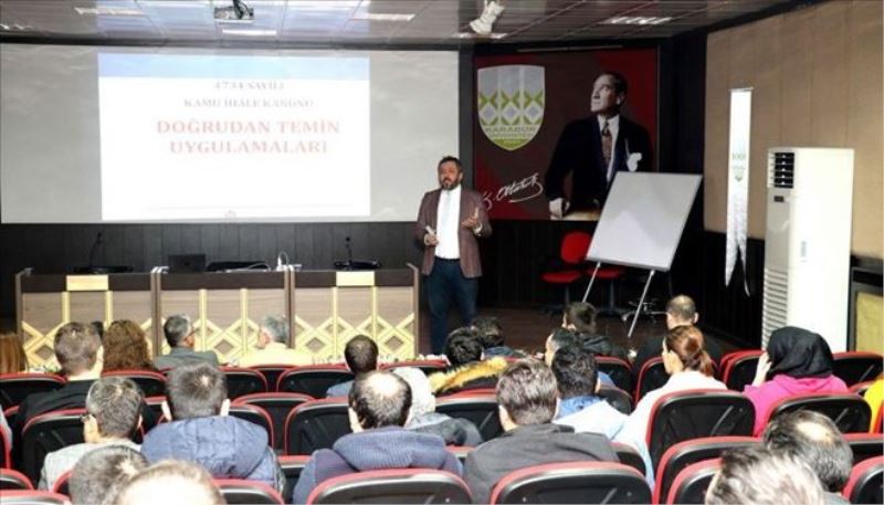 “Kamu İhale Mevzuatı” konulu eğitim programı, ilgili personelin katılımıyla Tıp Fakültesi Konferans Salonunda yapıldı.