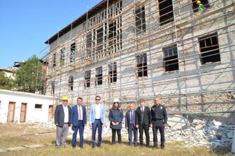 Safranbolu Kaymakamı ve Belediye Başkanı Dr. Fatih Ürkmezer, İlçe Jandarma Komutanı Jandarma Yüzbaşı Burak Ören, İlçe Emniyet Müdürü Osman Gül, İlçe Milli Eğitim Müdürü Hasan Gümüş ve yetkililerle birlikte restorasyon çalışmaları devam eden Kalealtı İlköğretim Okulu´nu yerinde inceleyerek yetkililerden bilgi aldı.