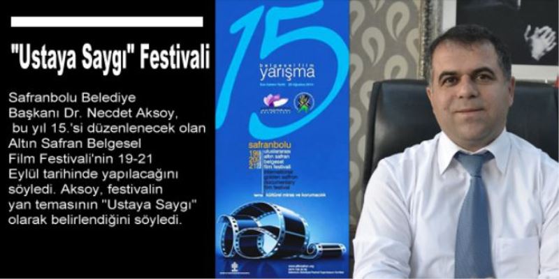 Safranbolu Belediye Başkanı Dr. Necdet Aksoy, bu yıl 15.`si düzenlenecek olan Altın Safran Belgesel Film Festivali`nin 19-21 Eylül tarihinde yapılacağını söyledi. Aksoy, festivalin yan temasının 'Ustaya Saygı' olarak belirlendiğini söyledi