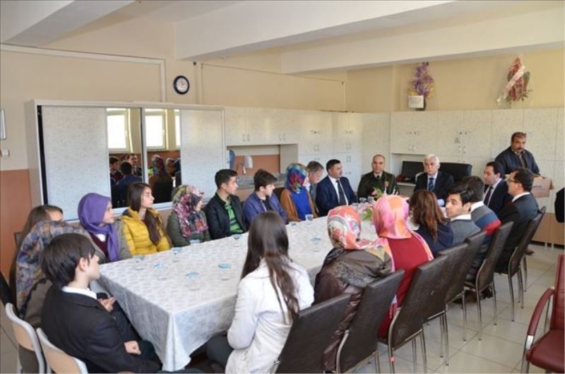 Öğrencilerle ilgilenen ve okuma, okuduğunu anlama, iyi yetişme, başarılı insan olma gibi konularda karşılıklı fikir alışverişinde bulunan Vali Orhan Alimoğlu sohbet sonrası öğrencilere kitap hediye etti.