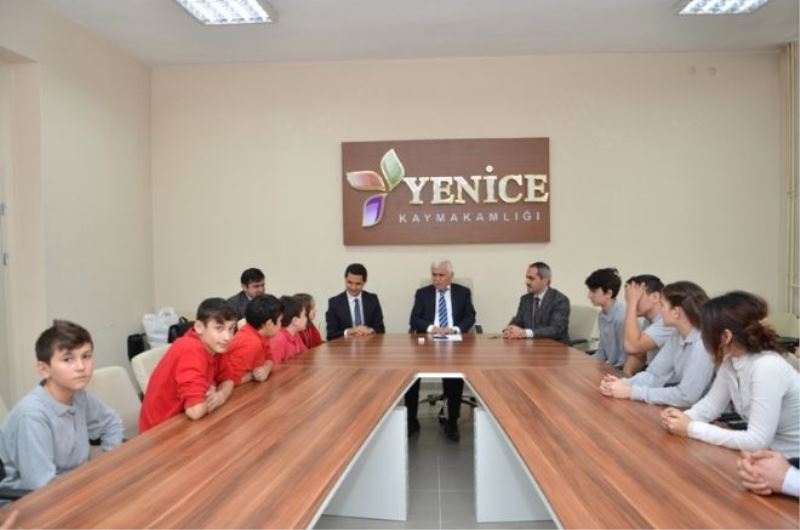 İlk olarak Yenice Kaymakamlığını ziyaret eden Vali Orhan Alimoğlu ve beraberindeki heyeti Yenice Kaymakamı Oğuz Cem Murat, Yenice Belediye Başkanı Zeki Çaylı, İl Genel Meclis Üyeleri ve daire müdürleri karşıladı. Karşılama töreninden sonra Kaymakamlık makamında Yenice Kaymakamı Oğuz Cem Murat’tan bilgilendirme alan Vali Orhan Alimoğlu daha sonra Yeniceli öğrencilerle bir araya geldi. Kaymakamlık toplantı salonunda öğrencilerle sohbet eden Vali Orhan Alimoğlu öğrencilere kitap hediye etti.