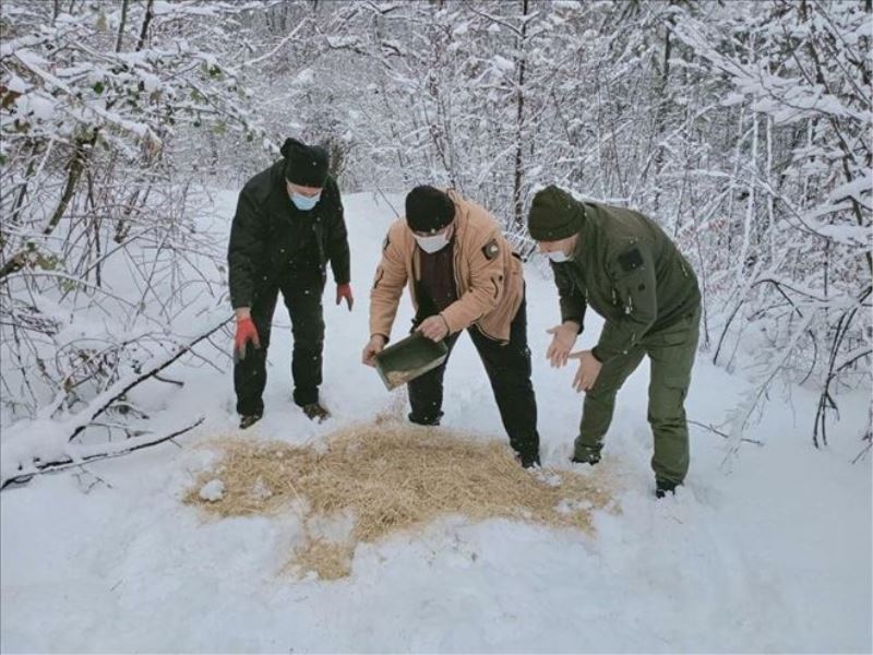 Karabük Doğa Koruma ve Milli Parklar ekipleri, av ve yaban hayvanlarının doğal ortamlarında desteklenmesi amacıyla yemleme çalışması yaptı. Çetin kış şartlarında yiyecek bulmakta zorlanan yaban hayvanları için harekete geçen ekipler ormanlık alana saman ve buğday bıraktı.