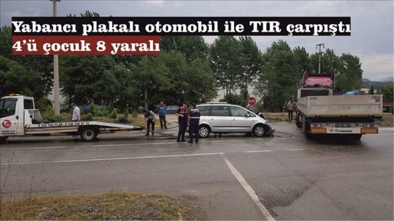 Edinilen bilgiye göre, Karabük istikametinden Eskipazar istikametine seyir halinde olan Rahmi Göksu(46) yönetimindeki yabancı plakalı otomobil, Bilal C. idaresindeki 78 BS 770 plakalı TIR´ın Organize Sanayi Kavşağından dönüş yaptığı sırada çarpıştı. Kazada Bilal C.(30), Rahmi G.(46), Büşra G.(13), Talha G.(9), Cansu Tuğba G.(15), Bersu G.(8), Fatoş G.(41) ve Halime Ş.(73) yaralandı. İhbar üzerine olay yerine 112, jandarma ve polis ekipleri sevk edildi. Sağlık ekiplerinin ilk müdahalesinin ardından yaralılar Karabük Eğitim ve Araştırma Hastanesine kaldırıldı.