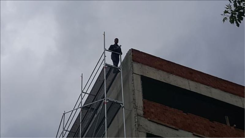 Edinilen bilgiye göre Nail K., Atatürk Bulvarı üzerinde bulunan 6 katlı İl Milli Eğitim ve Halk Eğitim Merkezi Müdürlüğü inşaatının iskelesine çıkarak intihara kalkıştı. İtfaiye ekipleri yerde branda açarak önlem alırken, polis ekipleri iş istediğini söyleyen Nail K.´yi ikna etmeye çalıştı. Bir kişi, “Yalandan delilik yapıyor” diyerek intihar girişiminde bulunan gence tepki gösterdi. Bu sırada başlayan yağmurda Nail K. ıslandı. Bir süre sonra polisler tarafından ikna edilen Nail K., çatıya çıkarılıp binadan indirildi. Evli ve 2 çocuk babası şahıs, ifadesi alınmak üzere karakola götürüldü.