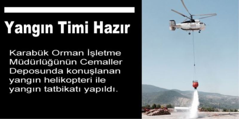 Karabük Orman İşletme Müdürlüğünün Cemaller Deposunda konuşlanan yangın helikopteri ile yangın tatbikatı yapıldı.