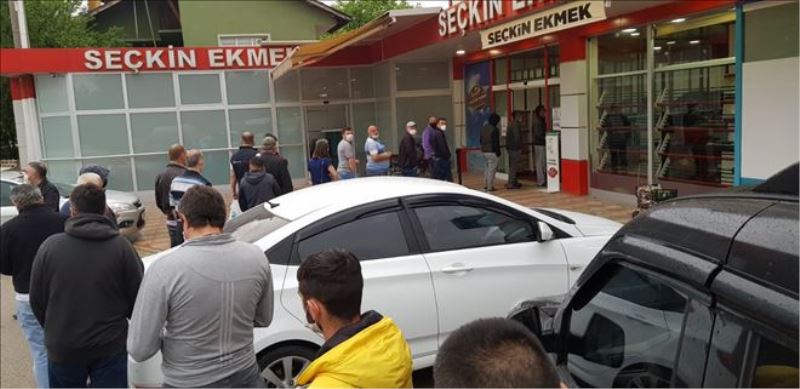 Karabük´te yeni tip korona virüs (Covid-19) salgını ile mücadele tedbirleri kapsamında sokağa çıkma kısıtlaması öncesi ekmek fırınlarının önlerinde uzun kuyruklar oluştu.