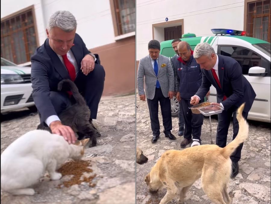 Safranbolu Kaymakamı Şaban Arda Yazıcı ve beraberinde kurum müdürleri 4 Ekim Dünya Hayvanları Koruma Günü münasebetiyle Yörük Köyü’nde can dostlar için sokağa yiyecek bıraktılar.