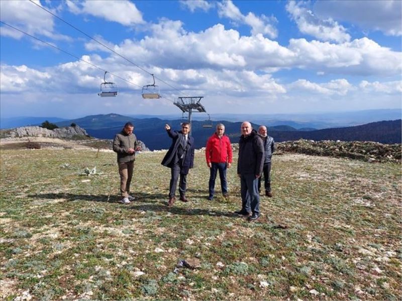 Alt ve Üst Günübirlik Tesisleri, otopark, mescit, acemi kayak pisti, kızak pistinde incelemelerde bulunan Vali Gürel, pist genişletme çalışmaları hakkında İl Özel İdaresi Genel Sekreteri Mehmet Uzun´dan bilgiler aldı.