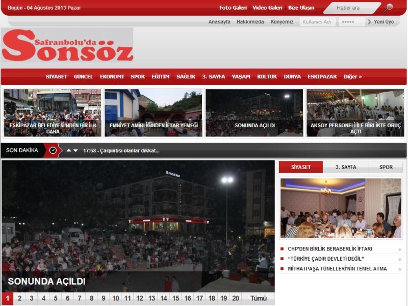 Uzun süredir yayın hayatını sürdüren gazetemiz internet sitesi http://www.safranbolusonsoz.com yeni yüzü ile yayın hayatına başladı. Siyaset, Güncel, Ekonomi, Spor, Yaşam, Kültür, Dünya kategorileri ile bölgemiz, ülke geneli ve dünyadan en son haberler ile yayın hayatını yeni yüzü ile devam ettiren http://www.safranbolusonsoz.com, Karabük, Eskipazar, Yenice, Eflani ve Ovacık’tan en son haberlerle de Karabük’ün nabzını tutacak. Gazetemiz Genel Yayın Yönetmeni Dursun Doğan, yayın hayatına 4 Ağustos 20113 Pazar tarihinden itibaren başlayan http://www.safranbolusonsoz.com’un yeni yüzü ile hayatına devam edeceğini söyledi. Doğan, “Uzun zamandır gazetemizin yayında internetten de haberlerimizi okurlarımıza ulaştırıyorduk. Günümüzde internet kullanıcısının çok olması ve her geçen gün artması nedeniyle internet sitemize de önem vermeye başladık. Bu nedenle http://www.safranbolusonsoz.com adresimizi yeniledik. Siyasetten, ekonomiye, sağlıktan eğitime ve ilçelerimizin de gündemini okuyucularımızın hizmetine sunacağız” dedi.