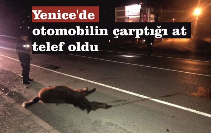 Edinilen bilgiye göre, kaza gece geç saatlerde Yenice -Zonguldak karayolunda bulunan Sanayi Sitesi mevki´inde meydana geldi. Zonguldak istikametinden Karabük istikametine giden bir otomobil seyir halinde iken aniden önüne çıkan başıboş ata çarptı. Ata çarpan sürücü ise yoluna devam ederek kaçtı. Telef olan atı gören vatandaşlar durumu emniyet ekiplerine bildirdi. Emniyet ekipleri belediye itfaiye ekiplerini arayarak telef olan at belediye ekipleri tarafından yol kenarına alındı.