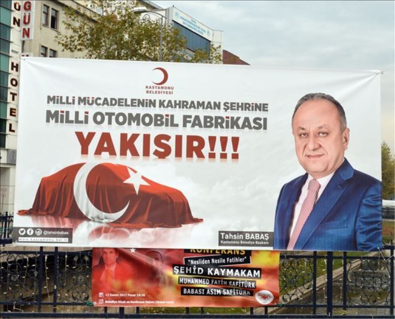 Bilim, Sanayi ve Teknoloji Bakanı Faruk Özlü´nün, ‘Yerli otomobil fabrikası için kentleri yarıştıracağız´ şeklindeki açıklamaları üzerine Kastamonu Belediyesi, Kastamonu Ticaret ve Sanayi Odası harekete geçti. Yerli ve milli otomobil fabrikasının Kastamonu´da kurulması için şehrin giriş ve çıkışları başta olmak üzere belediye ve ticaret odası tarafından 16 değişik noktaya afişler asıl. Afişlerde; ‘Milli Mücadelenin Kahraman Şehrine Milli Otomobil Fabrikası Yakışır´ denildi. Fabrika için Kastamonu Organize Sanayi Bölgesi´ndeki 1 milyon 300 bin metrekare arazi yerli otomobil fabrikası için tahsis edilecek.