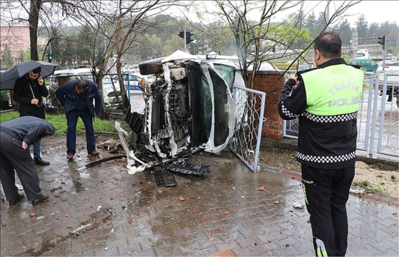 Kaza, sabah saatlerinde Demir Çelik kavşağında meydana geldi. Karabük Üniversitesi´nde öğretim üyesi olan İnan Keskin (38) idaresindeki 78 SU 092 plakalı otomobil, iddiaya göre kavşakta hızla dönüş yaptığı sırada havanında yağışlı olması nedeniyle yol kenarındaki çay bahçesi ve lokantanın bahçe duvarına çarptı. Gürültü üzerine lokantadan çıkanlar, yan yatan otomobildeki İnan Keskin´i araçtan çıkardı. İnan Keskin, vatandaşların ihbarı üzerine çağrılan 112 Acil ekibinin ilk müdahalesinin ardından Karabük Eğitim ve Araştırma Hastanesi´ne kaldırıldı. Kaza sonrası kopan duvar parçaları ise bahçede park halinde bulunan 2 otomobile çarpmasıyla hasar gördü.