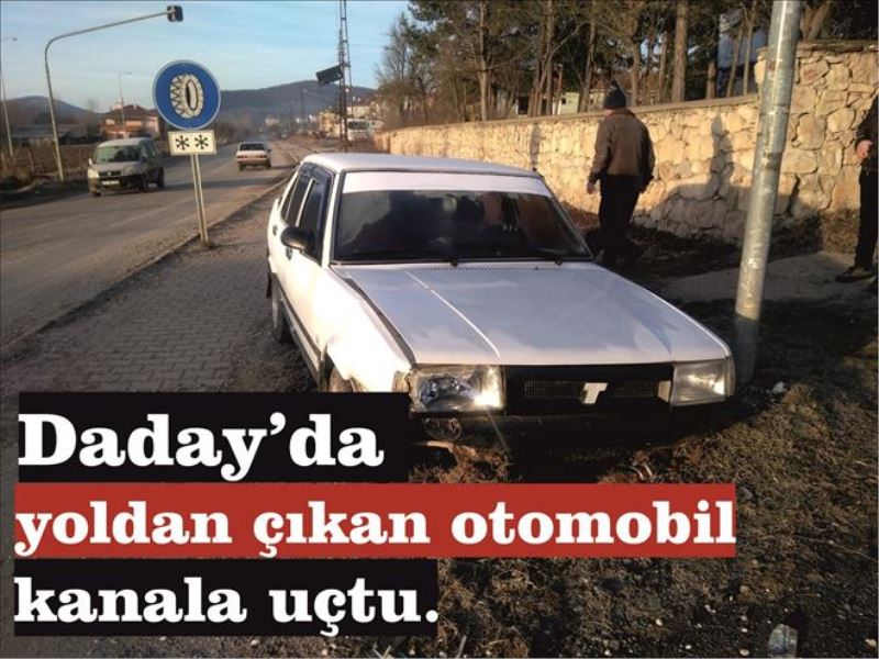 Edinilen bilgiye göre, Daday´da çocuklarını okula bırakan Suat G. (40) yönetimindeki 37 EH 892 plakalı otomobil, okul dönüşünde sürücüsünün direksiyon hakimiyetini kaybetmesi sonucu yolun kenarında bulunan kanala uçtu. Kazada otomobil sürücüsü Suat G. yaralandı. Yaralanan Suat G, olay yerine çağrılan 112 Acil Sağlık Ekipleri tarafından Daday Devlet Hastanesi´ne kaldırıldı.