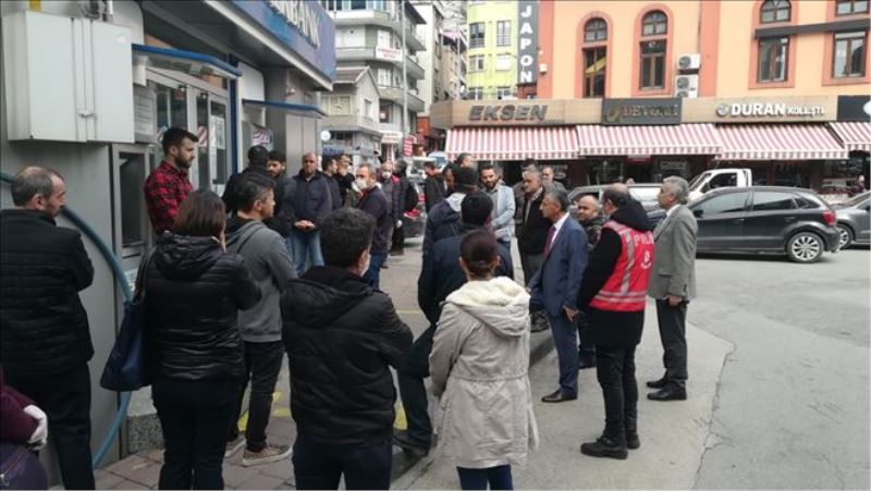 Öte yandan Zonguldak Valisi Erdoğan Bektaş da bir kamu bankası önüne gelerek vatandaşları uyardı. Tüm dünyanın korona virüs (COVİD-19) salgınıyla uğraştığını ve uyarılar yapıldığını anlatan Vali Bektaş, evde kalınması uyarılarını yineledi.